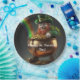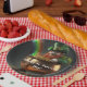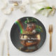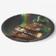 A paper plate with a leprechaun carrying a pot of gold with a rainbow behind him. You can edit or personalize the text. Matching products available.
