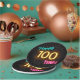 Plato De Papel Letrero Neon número 100 en pared de ladrillo