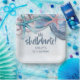 Las placas de papel para el cumpleaños de la playa tienen estampidas acuáticas y conchas marinas con la leyenda "Let's shellabrate" en escritura de escritura azul pizarra. Perfecto para los cumpleaños de un niño o un chica en la playa, la costa y el mar.