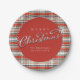 Plato De Papel Leyenda caligráfica navideña suave rojo