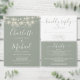 Elegantes placas de papel boda verde sabio con luces de cuerda de bonito, nombres de estilo de firma y su fecha especial de boda. Diseñado por Thisisnotme©