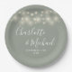 Plato De Papel Leyenda de cadena Firma Script Sage Green Boda