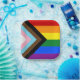 Placas de papel: Bandera arcoiris y la variación "Progreso" agrega un chevron a lo largo del hoist que presenta rayas negras, marrones, azul claro, rosas y blancas para llevar a esas comunidades (personas marginadas de color, transexuales, y personas que viven con VIH/SIDA y los que se han perdido) al frente; "la flecha señala a la derecha para mostrar el movimiento hacia adelante, mientras que estar a lo largo del lado izquierdo muestra que aún se necesita avanzar.