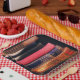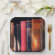 Estas placas de papel tienen algunos libros viejos retratados en ellas.