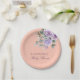 Personalize this Lilac Peony Baby Shower Paper Plate – a beautifully crafted design perfect for a chic floral baby shower. Featuring delicate watercolor lavender peony flowers accented by soft greenery, this elegant design is set against a soft peach background, creating a sophisticated, lilac-toned theme that’s both fresh and inviting. Add a touch of elegance to your celebration with this stylish, floral-inspired choice, ideal for the mom-to-be who loves a refined, nature-inspired aesthetic. Perfect for bringing charm to your Lavender Baby Shower Party, Lunch or Picnic.