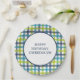 Plato De Papel Lime Green, Naval y Turquesa Blue Plaid