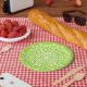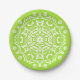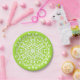 Esta mandala blanca se sienta sobre un fondo verde lima. Los colores son enérgicos y luminosos. Parte de la colección Mola Mandala.