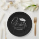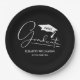 Las placas de papel de los fiestas incluyen la palabra "Graduado", el año de clase, su nombre y el nombre de su escuela con letras de moda en cualquier fondo de color, mostramos negro. Cambie el color de fondo con las herramientas de edición de Zazzle (cambie también el color del año de clase, si lo hace). COINCIDIENDO elementos de nuestra colección.