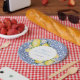 Limones pintados a mano con acuarela sobre un fondo basado en un azulejo vintage azul y blanco. Si prefiere el círculo central con un borde liso (en lugar de festoneado), esta opción está disponible. Debajo de las casillas de texto de personalización, "haga clic para personalizar más" y luego vaya al área de "capas" y muestre la "elipse" y oculte la capa del círculo festoneado.