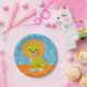 León de estilo personalizado único dibujando sobre fondo acuarela en naranja y azul. placas de papel decorativas personalizados. la idea de la decoración fiesta. Regalo para los amantes del león y del safari.