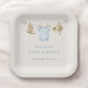 Adorable little cowboy themed baby shower paper plates featuring a charming clothesline design. Perfect for a western inspired celebration with rustic and playful details. Ideal for dessert tables, buffet setups, and coordinated party decor. High quality print.