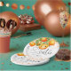 Pequeños naranjas cortados de papel para bebé con una linda cara en un fondo de naranja. Estas adorables placas de papel para bebés se pueden personalizar con texto.