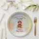 Celebrate your newest little hero with these charming firefighter baby shower party decor paper plates featuring an adorable teddy bear dressed in classic red turnout gear. Designed in a soft vintage watercolor style, this creation blends warm firehouse reds, subtle star details, and a coordinating flaming hydrant pattern for a cohesive and memorable presentation.