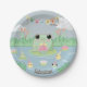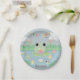 Make your table extra adorable with these Little Frog Pond kids birthday paper plates featuring a cute pastel cartoon pond scene. The design shows a sweet froggy at the center with dragonflies, party-hat duckies, lotus leaves, and soft clouds in a playful, kid-friendly illustration style. Perfect for creating a cheerful and coordinated frog-themed birthday party setup.