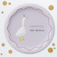 Ponga la mesa más dulce para su pequeño gran día con estos adorables platos de papel, con un cuadro de un ganso en un gorra y cinta fiesta, un suave fondo de gingham lilac y un marco ondulado. Diseñados para coincidir con la colección de cumpleaños Little Goose, son perfectos para los primeros cumpleaños de un niño o chica. Personalice el nombre de su hijo con un toque especial.