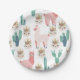Platos de papel de fiesta de cactus rosados y de llama verde. Esto sería tan lindo para el tema de tu cumpleaños.