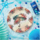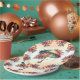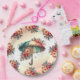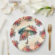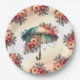 El diseño de estas placas de papel tiene un estilo floral vintage. Alrededor hay un paraguas muy colorido con un ramo de flores.