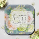 Las placas de papel para la ducha de la novia presentan hermosas hortensias blancas y verdes en acuarela, rosas rosadas y crema, margaritas, pequeñas flores y hojas en azul polvoriento con tus detalles en letra elegante. Artículos COINCIDENTES en nuestra tienda.