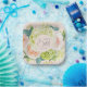Preciosas hortensias blancas y verdes en acuarela, rosas rosadas y crema, margaritas, pequeñas flores y hojas en rosa, personaliza estos platos de papel cuadrados para tu despedida de soltera, fiesta de compromiso, boda o cualquier ocasión con tus detalles en letra chic. Artículos COINCIDENTES en nuestra colección.