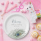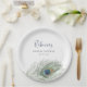 Plato De Papel Lluvia de Novia Pluma de Pavo Real Acuarela