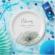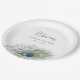 Una combinación perfecta con nuestro conjunto de lluvia de novia de pluma de pavo real acuarela, estos platos de papel elegantes son un toque final encantador. El diseño presenta una sola pluma de pavo real acuarela con su texto personalizado -- nombre de la invitada de honor, tipo de evento y fecha -- en letra azul medianoche y índigo coordinados.