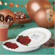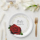 Plato De Papel Lluvia de Regalos Nupciales con Rosa Roja y Dorado