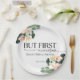 Eleva tu celebración de despedida de soltera con nuestros platos de papel "But First Mimosas", que presentan un impresionante diseño floral de acuarela adornado con elementos tropicales de palmeras e hibiscos. Combinando perfectamente elegancia y diversión, estos platos son ideales para servir deliciosos bocadillos mientras se crea una atmósfera vibrante para tu evento especial. Diseñados por CaMiDesigns, estos platos mejoran tu decoración y hacen que la limpieza sea muy fácil. Por favor, comuníquese directamente con el Servicio de Atención al Cliente de Zazzle para obtener ayuda con pedidos, envíos, información del producto y más.