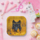 Plato De Papel Lobo de perro negro con ojos de oro feliz cumpleañ
