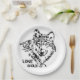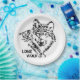 Conjunto de ocho placas de papel de 9" con una imagen de un boceto de un lobo solitario (Canis lupus) y texto opcional sobre blanco. Vea la combinación de la montaña arenisca redonda y la taza de cerdo. Vea la colección completa de la placa de naturaleza y vida silvestre en la sección HOME.