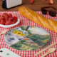 Una recopilación surrealista para los amantes del arte y de la llama. El fondo es la pintura de los alrededores de Briey de Pierre-Auguste Renoir, con una llama dulce y un ilustracion acuático de corona de girasol al frente.