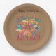 Los Buenos Días Están Llegando A Las Setenta Placas De Papel. Un diseño retro divertido con ese toque groovy. El fondo tiene esa mirada anticuada y anticuada de color caramelo marrón. Poder floral verde azulado y dorado sobre una rueda de giro retro. Un fabuloso tributo a los años setenta. ¡Está en mi lista de regalos!
