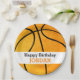 Los niños personalizaron los deportes del feliz cumpleaños del baloncesto - placas de papel del fiesta temático. Personalizado con nombre en naranja. El fondo es blanco con un modelo anaranjado del baloncesto del estilo de la acuarela del vintage. La diversión se divierte - las fuentes temáticas de la fiesta de cumpleaños para un amante del baloncesto. El texto lee feliz cumpleaños en negro.