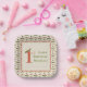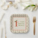 Las placas de papel de cumpleaños con una oruga adorable arrastrando sobre el número 1. El fondo es un patrón hecho de ilustraciones antiguos de insectos en el fondo de papel vintage para un aspecto elegante. Personalizar con el nombre de su bebé.