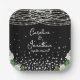 Plato de Papel de Luces de Cadenas Rústicas Negras - Este elegante plato de papel negro y blanco, con hermosas luces de cadenas con brillo de diamante y rosas blancas se puede personalizar con la información de su boda.