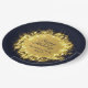 Plato De Papel Luces Navideñas de Brillo Dorado y Azul Marino Fie