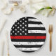 Añada el toque final a su retiro de bomberos o fiesta de graduación de bomberos con estas delgadas líneas rojas rústicas de papel de bombero y suministros de fiesta. Diseño de la bandera estadounidense en los colores de la bandera del bombero, diseño angustiado en blanco. Esta colección de retiro de bomberos será la favorita. Vea nuestra delgada colección de líneas rojas para igualar invitaciones de retiro para bomberos, regalos para bomberos, favores para fiestas y suministros. DERECHOS RESERVADOS © 2020 Judy Burrows, Black Dog Art - Todos los derechos reservados. Placa de papel de bombero con bandera de bombero delgada de la línea roja
