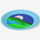 Plato De Papel Luna llena de pie sobre las colinas verdes
