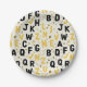 Make a sophisticated statement at your next celebration with these high-contrast watercolor alphabet paper plates. This striking design features bold black watercolor letters interspersed with vibrant golden-yellow characters on a warm, textured ivory background. Accented with shimmering gold glitter dots, diagonal metallic slashes, and dainty botanical leaf sprigs, these plates offer a luxurious twist on a traditional educational theme. They are an ideal choice for upscale "Back to School" galas, sophisticated graduation parties, or a modern, gender-neutral nursery celebration.