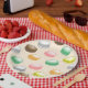Macarones dulces y encantadores en placas de papel.