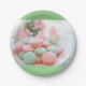 Macarons de color verde y rosa en placas de papel fiesta perfectas para reuniones primavera y verano