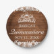 Placa de papel Quinceañera. Estilo rústico con un fondo de madera y decoración de encaje blanco. Hay más artículos disponibles en este estilo en nuestra tienda. Puede editar el diseño más adelante, cambiar colores, fuentes y añadir texto extra haciendo clic en el enlace "personalizar más adelante".