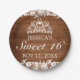 Plato De Papel Madera rústica y encaje blanco Tiara Sweet 16