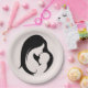 Silueta madre e hijo sobre un patrón cardíaco suave de color rosa para un Baby Shower.