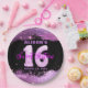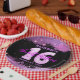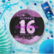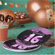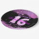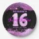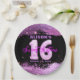 Este plato de papel de personalizable es perfecto para celebrar una ocasión especial. El plato presenta un fondo negro con un purpurina rosado, añadiendo un toque de glamour a su fiesta. En el centro de la placa se encuentra un gran número 16, compuesto por un globo rosa en forma de 1 y un globo plateado en forma de 6. Encima del número 16 está el nombre del celebrante con una letra rosada, y debajo está la frase "Dieciséis Dulces" en la letra correspondiente. La fecha está escrita con una letra pequeña rosada debajo de "Sweet Sixteen". ¡Este plato le dará un toque personal a su celebración!