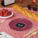 Plato De Papel Magenta rojo oscuro aguijón negro espuma Monograma