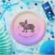 Un diseño lindo y divertido que presenta a una adorable hada capybara sosteniendo una varita mágica en su boca, rodeada de estrellas brillantes. Lleva zapatos rosados de moda y se para sobre un fondo suave de gradiente que combina tonos suaves de amarillo, rosa y lila. Esta ilustración juguetona y soñadora es perfecta para niñas que aman los animales mágicos y las vibraciones de hadas.