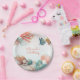 Magical Under The Sea Watercolor Birthday Party Plate, Chica de cumpleaños con el tema de la sirena "Sirena bajo el mar" con sirena, corales coloridos pintados de acuarela, algas y escalas de sirena en rosa, morado y turquesa. Esta encantadora invitación para la fiesta de cumpleaños de los niños es perfecta para una celebración de verano. Consulta más elementos para esta hermosa fiesta de cumpleaños en nuestra colección.