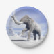 Mamut grande que camina lentamente en la montaña nevosa contra el viento