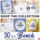 ¡Celebra este cumpleaños especial con estos 50 platos de papel de cumpleaños de playa! Mano caprichosa dibujada Doodle 50th Beach Birthday Paper Plates