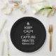 El diseño del tema pirata presenta una vieja imagen de bandera pirata de una calavera y huesos cruzados junto con una versión de los antiguos carteles británicos de Mantén la Calma. Este dice Mantén la Calma y Captura Piratas - perfecto para Halloween, el Día de Hablar como un Pirata o cualquier fiesta de cumpleaños con tema pirata u otro evento pirata.